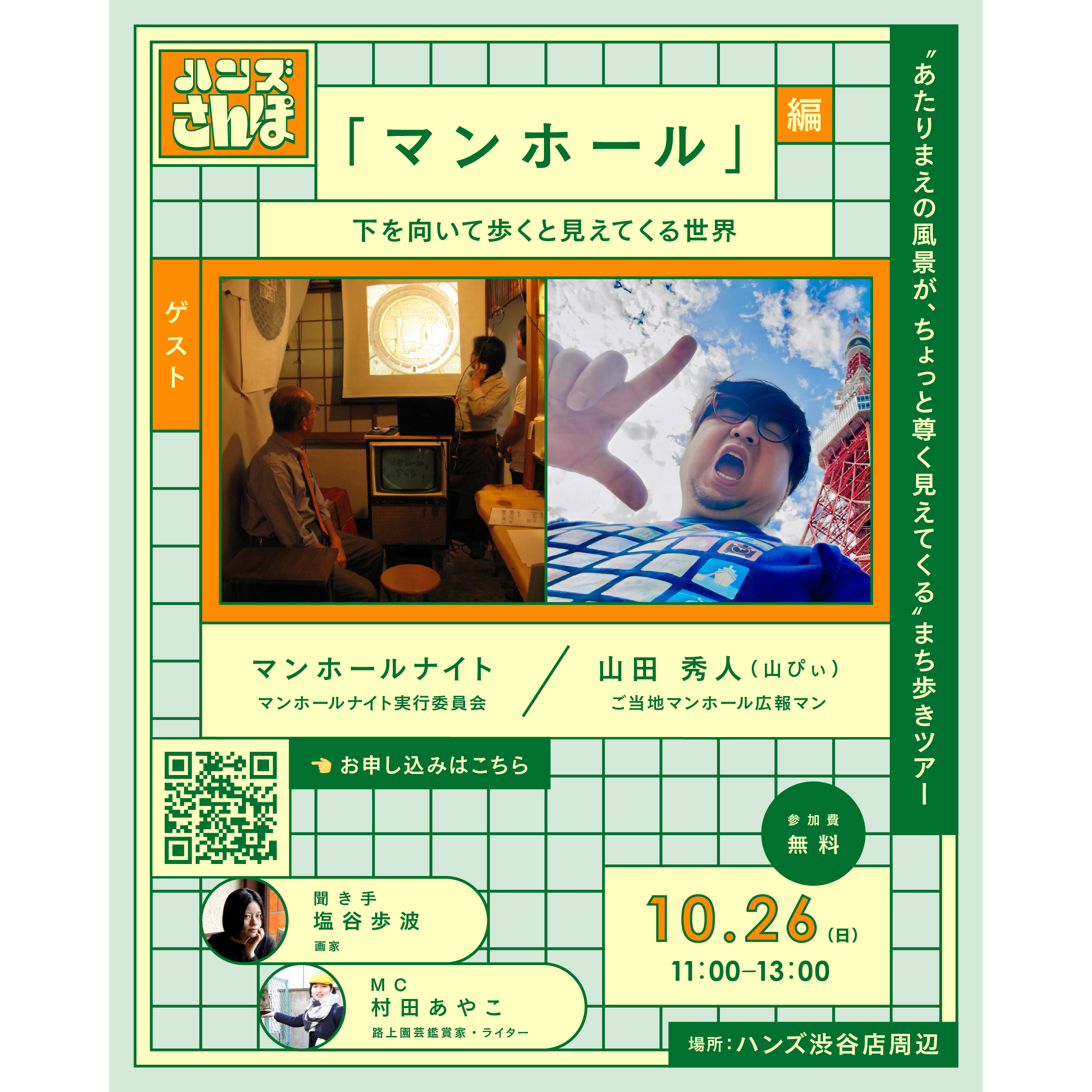 渋谷という都市の風景や文化と生活、そしてハンズ渋谷店をつなぎ直す、フィールドワーク型企画「ハンズさんぽ」を開催します。「防災」「マンホール」「平成レトロ」など“生活”にまつわるテーマを手がかりに、偏愛の視点をもつゲストと渋谷のまちを歩く体験型プログラムです。「売り場とまちがつながる発見」を通じて、日常の風景を新しい目で見つめ直し、“生活編集図鑑”の1ページをめくるような体験をお届けします。