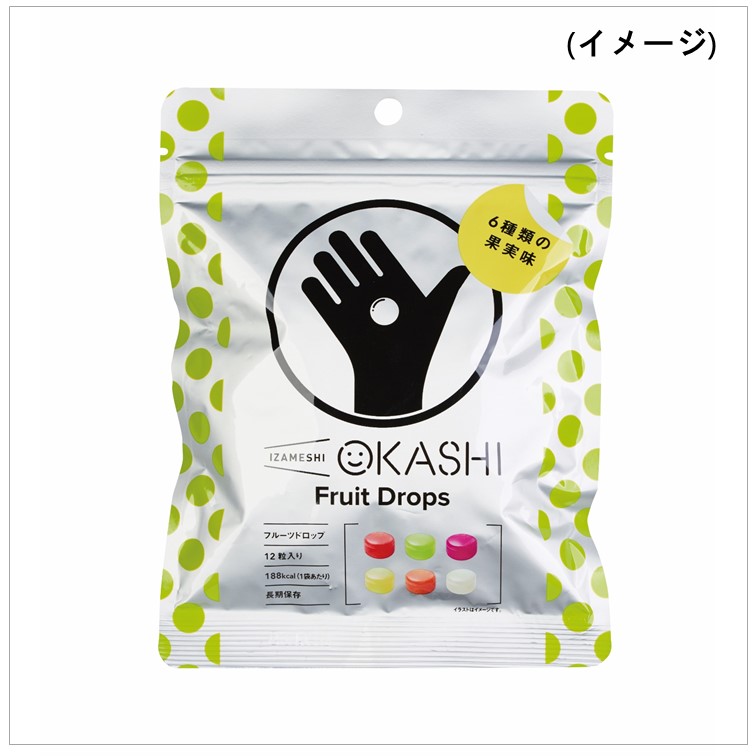 当日は、こちらの3種類の防災食を試食していただきます。(フルーツドロップは1組2つ)