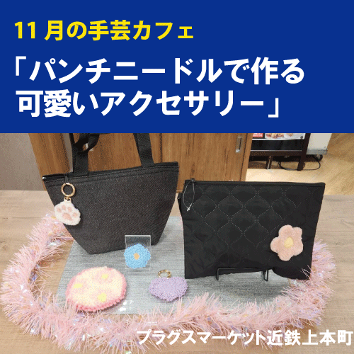 今月の手芸カフェは「パンチニードルで作る可愛いアクセサリー」です。