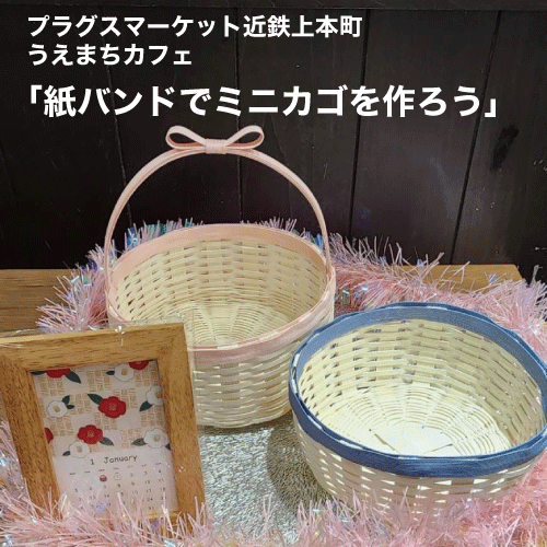 今月の手芸カフェは「紙バンドでミニカゴを作ろう」です。