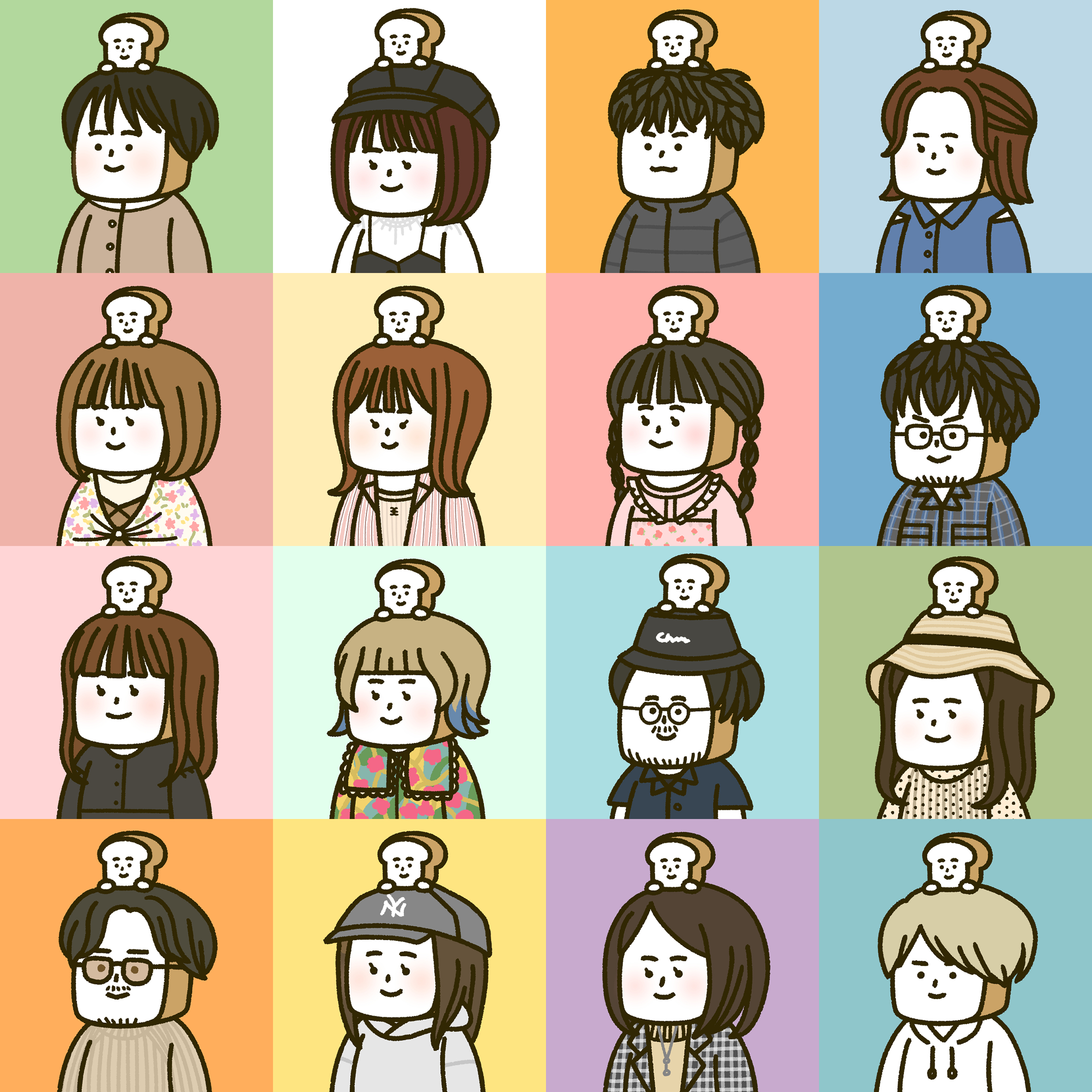 頭に「まいにちパン子」のパン子を乗せ、お顔がパンになった似顔絵を描きます! その場にいらっしゃらない方でも、お写真を見て描いたり、小さいお子様も参加OK! 電子データでお渡しするので、SNSのアイコンにおすすめです◎