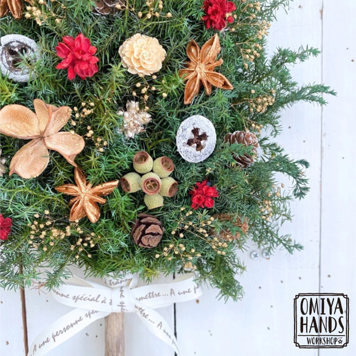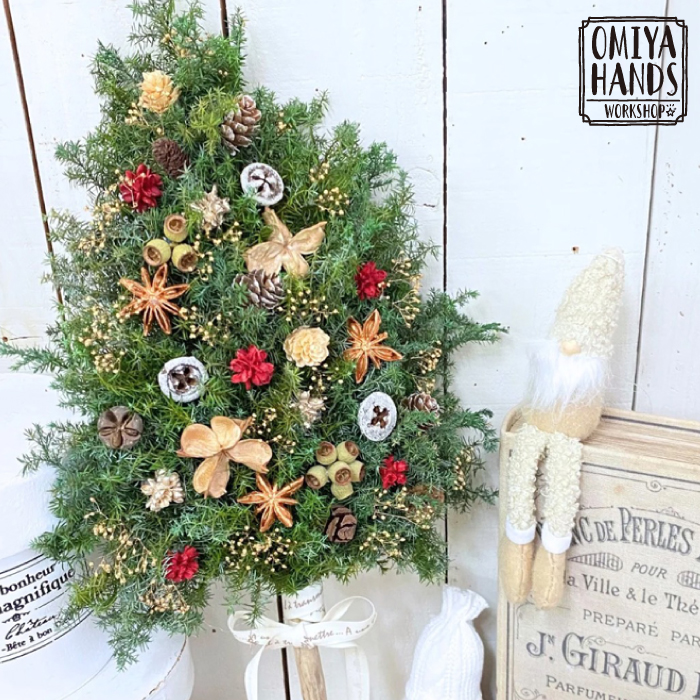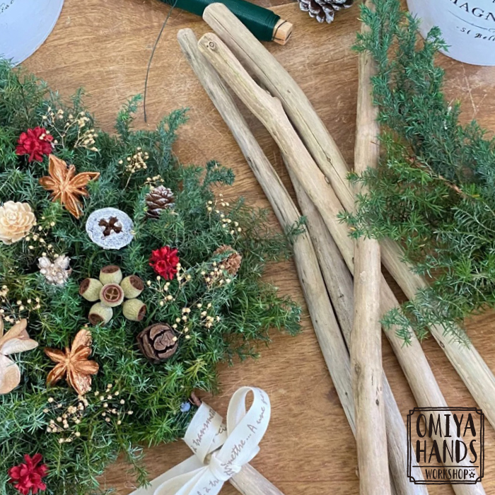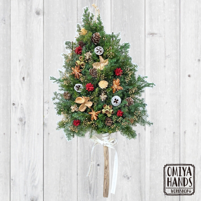 プリザーブド加工のヒムロスギと流木でつくる壁掛けのクリスマスツリーです。