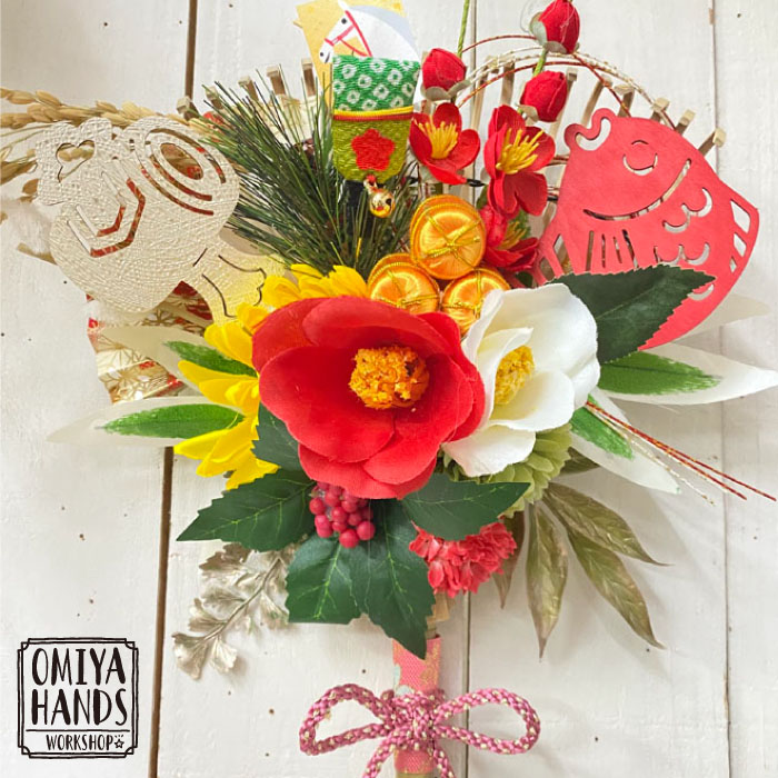 ハンズ大宮店 【大宮店】福 熊手アレンジとミニ門松アレンジ