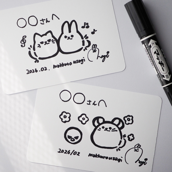 makkuro usagiのキャラクターの中からお好きな1匹~2匹を選んでいただき、 その場で描いたイラストをサイン入りでお渡しします。