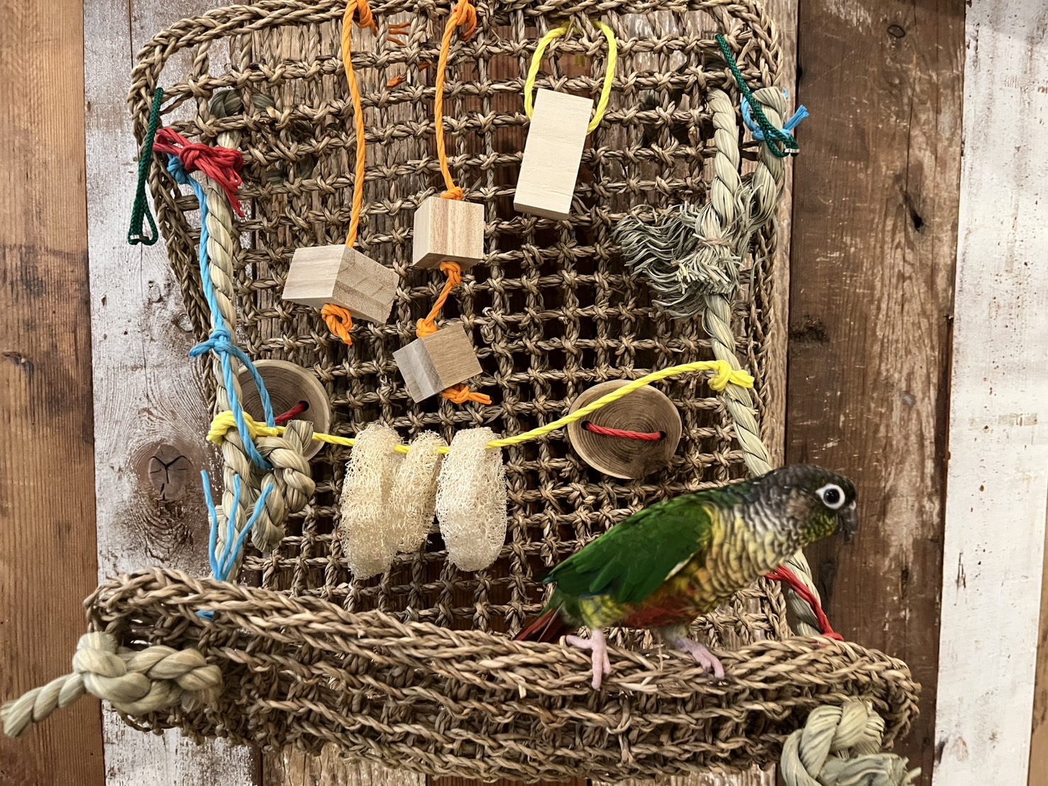 い草やウッドロックなど、安心・安全な素材を使って小鳥の遊び場をつくります。 いろんな形状にしたり、おもちゃやロープを組合わせてオリジナルのアスレチックをつくってみませんか。