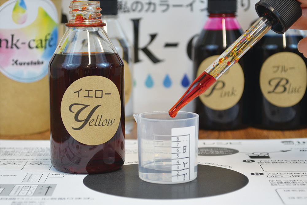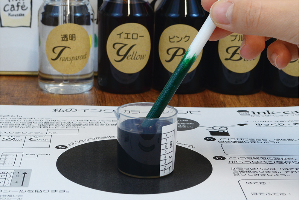 インクの基本色5色を組み合わせてできる84色の中から、お好きな色を選んで調色する【インクづくり】+つくったインクでペンを組み立てる【からっぽペンづくり】体験を実施できるワークショップです。