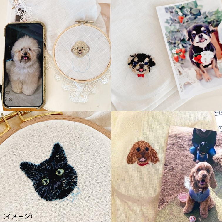 可愛いうちの子の写真や画像をもとに、ワンポイント刺繍をします!