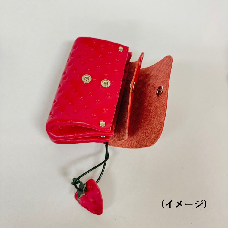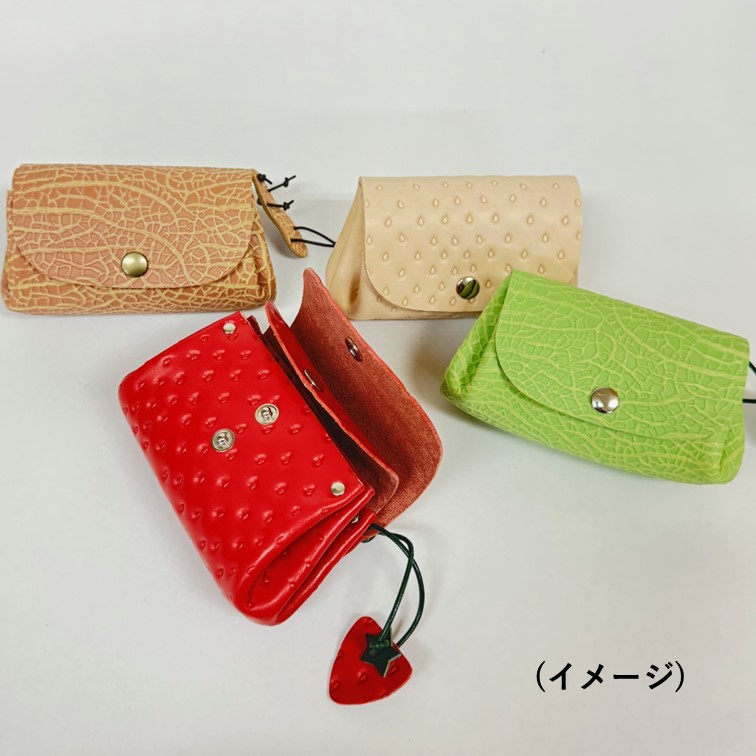 フルーツ柄のレザーでころんとしたアコーディオンポーチをつくります。革の柄をお選びいただけます。