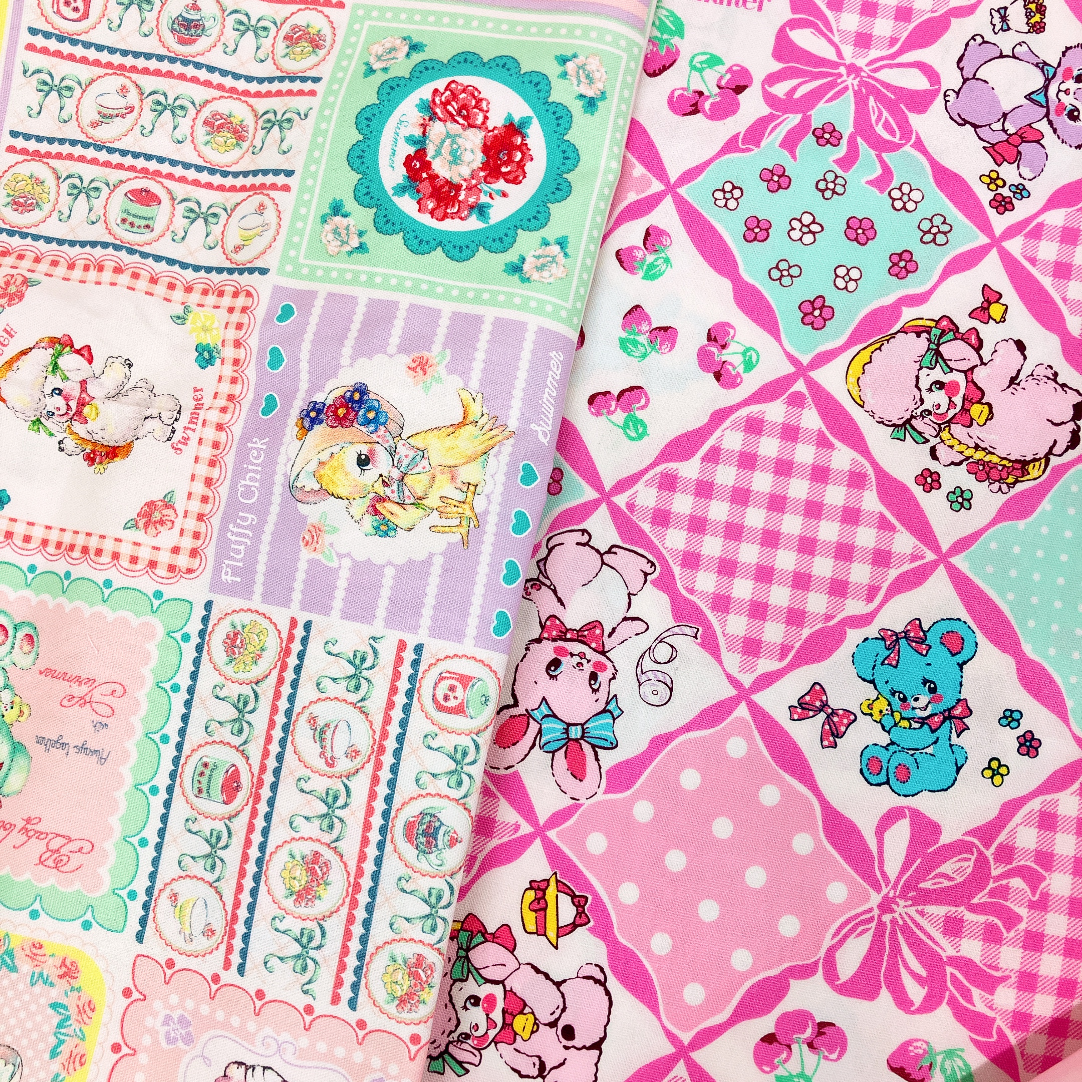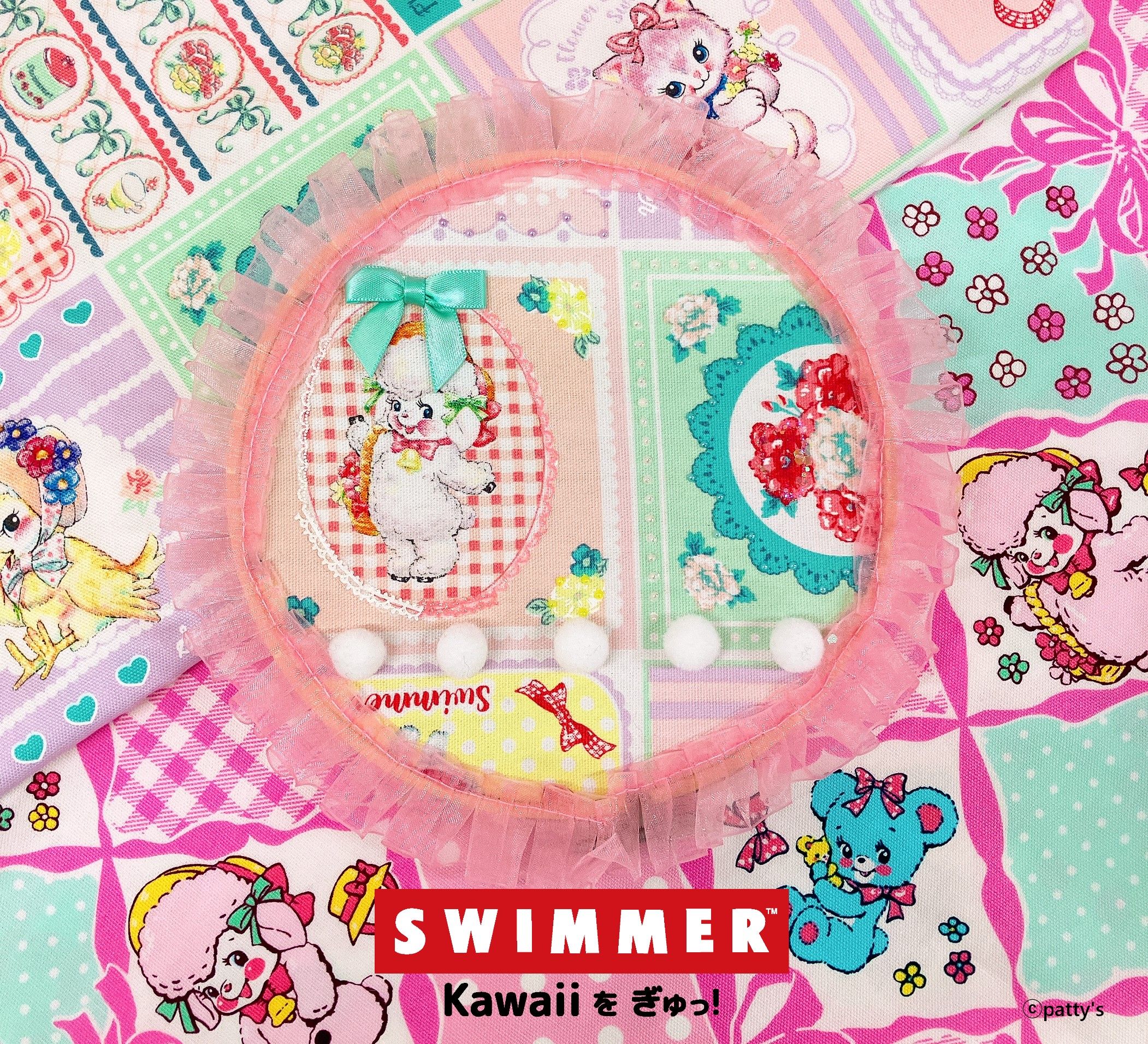 パッチワーク柄がかわいいSWIMMERの生地と刺繍枠で