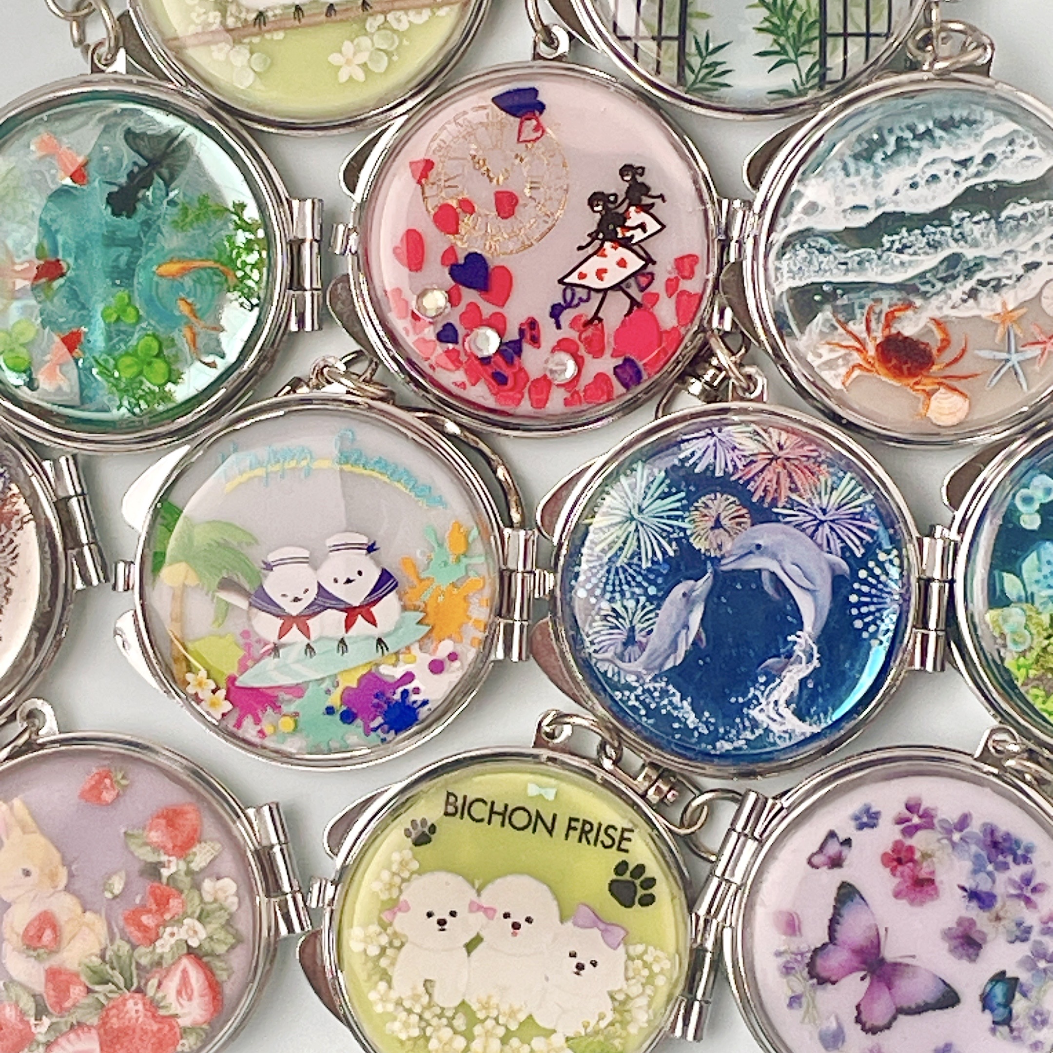 シールやレジンを使ってミラーキーホルダーを仕上げていきます。初めての方にもおすすめ!