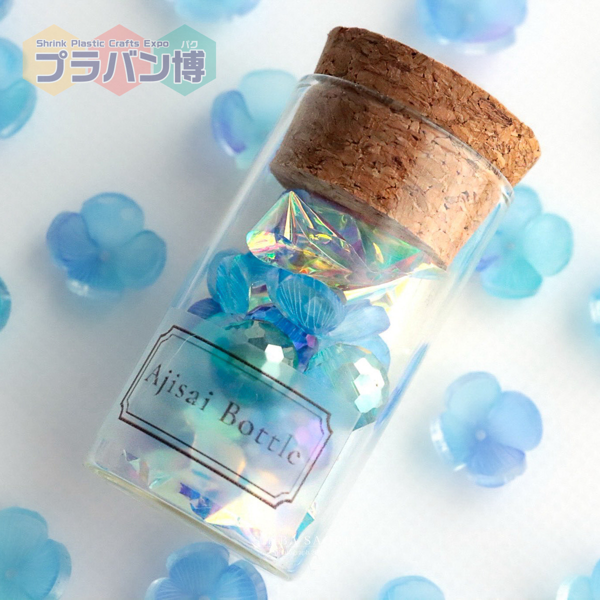 「ひと味違うプラバンクラフト」体験!プラバンで小さな花を5個つくり、ビーズと一緒にコルク瓶に添えて、飾れる『思い出ボトル』に。