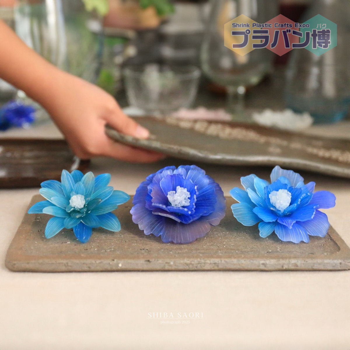 「暮らしに樹脂の花のひとときを」をコンセプトにプラバンで繊細な表情の花々を制作。