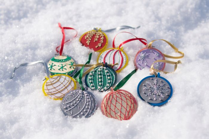 カラフルな刺繍オーナメントでクリスマス準備をしませんか。