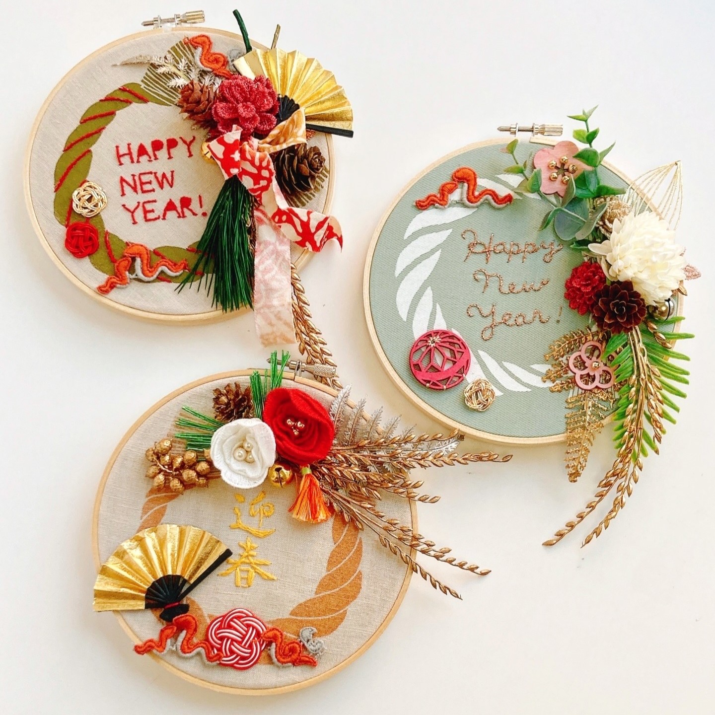 手づくりのしめ縄飾りで新年を迎えましょう!刺繍やビーズ、造花を組み合わせて、華やかなしめ縄がつくれます。