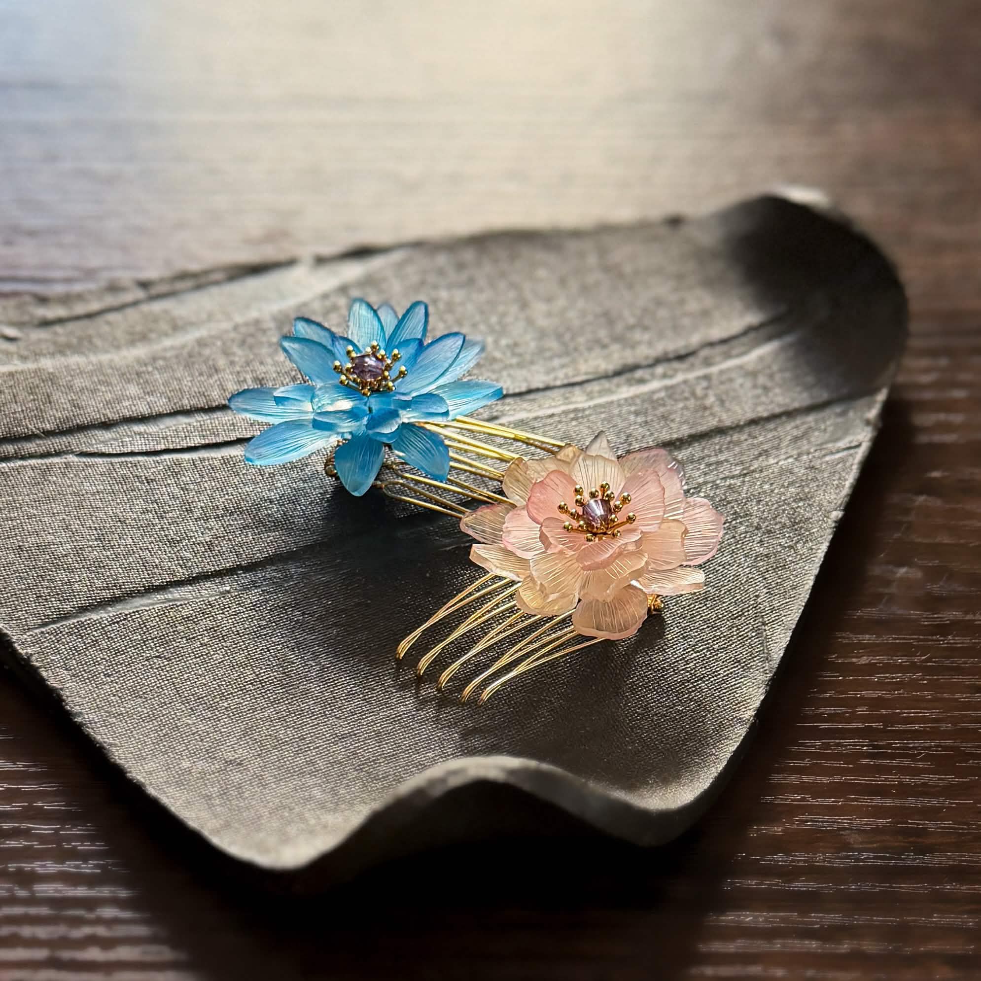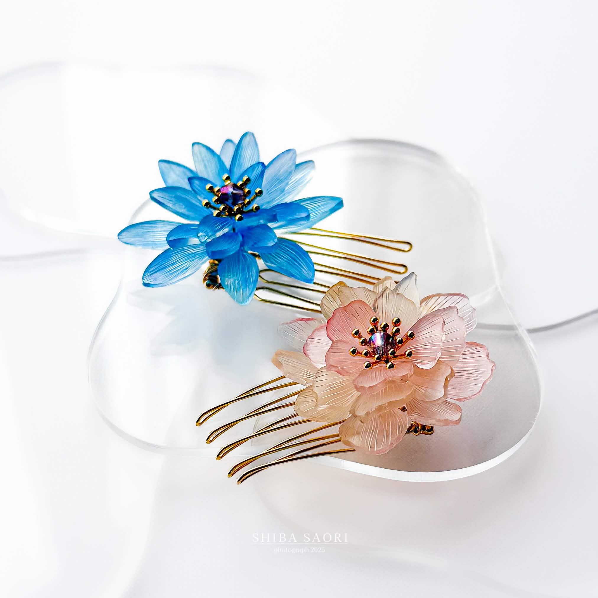 「暮らしに樹脂の花のひとときを」をコンセプトにプラバンで繊細な表情の花々を制作。