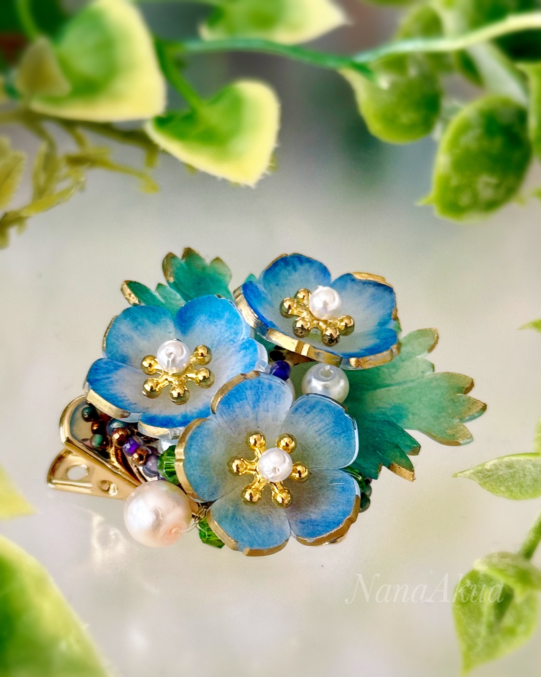 プラバンで楽しむ、大人も使えるリッチなアクセサリーづくり。今回は「ネモフィラ」の 花をあしらったコサージュクリップ。花はお好みの色合いに着色できます。はじめてさん からつくり慣れている人まで大歓迎です。