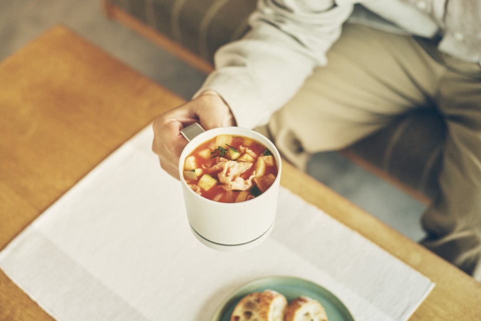 実際に「エレキソルト カップ」を使って、市販スープの味の変化を体験いただける試食もご用意しています。
